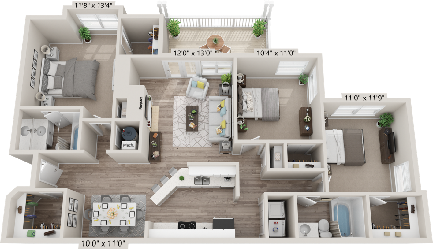 Large patios and balconies